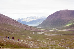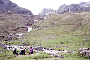 After breakfast, we continue to pick our way along the bottom of the river valley. Picking the right course is mostly guesswork, we weave side to side, searching for places to rock hop over the water. No one wants to change footwear or get wet feet if it can be avoided.