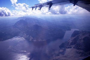 Flight is fantastic! For 90 minutes we are all pressed against the windows, somewhat awed by the MacKenzie mountains below. This is a ‘big river’ in deep wild country, and I am bit nervous thinking of what lies ahead. The pilot climbs to 7600' before dropping through light rain clouds in to the Nahanni valley - I cran to get a glimpse of Virginia Falls but can’t pick it out. Our destination is Rabbit Kettle lake, a turquoise jewel set among low forested hills with mountain peaks in the back ground. Its a picture perfect late afternoon, I can’t believe were are finally here!