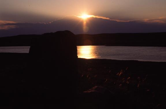 Eventually, we come to the archeologically significant stretch of river about 1 km up stream from the Thelon Bluffs. Tent rings, chert flakes, wood stakes, midden fields decorate the river terrace. Unfathomable to us but significant to others, stone markers on the slopes beg further investigation. The views are magnificent in all direction from this natural hunting, er, camping/vantage point.